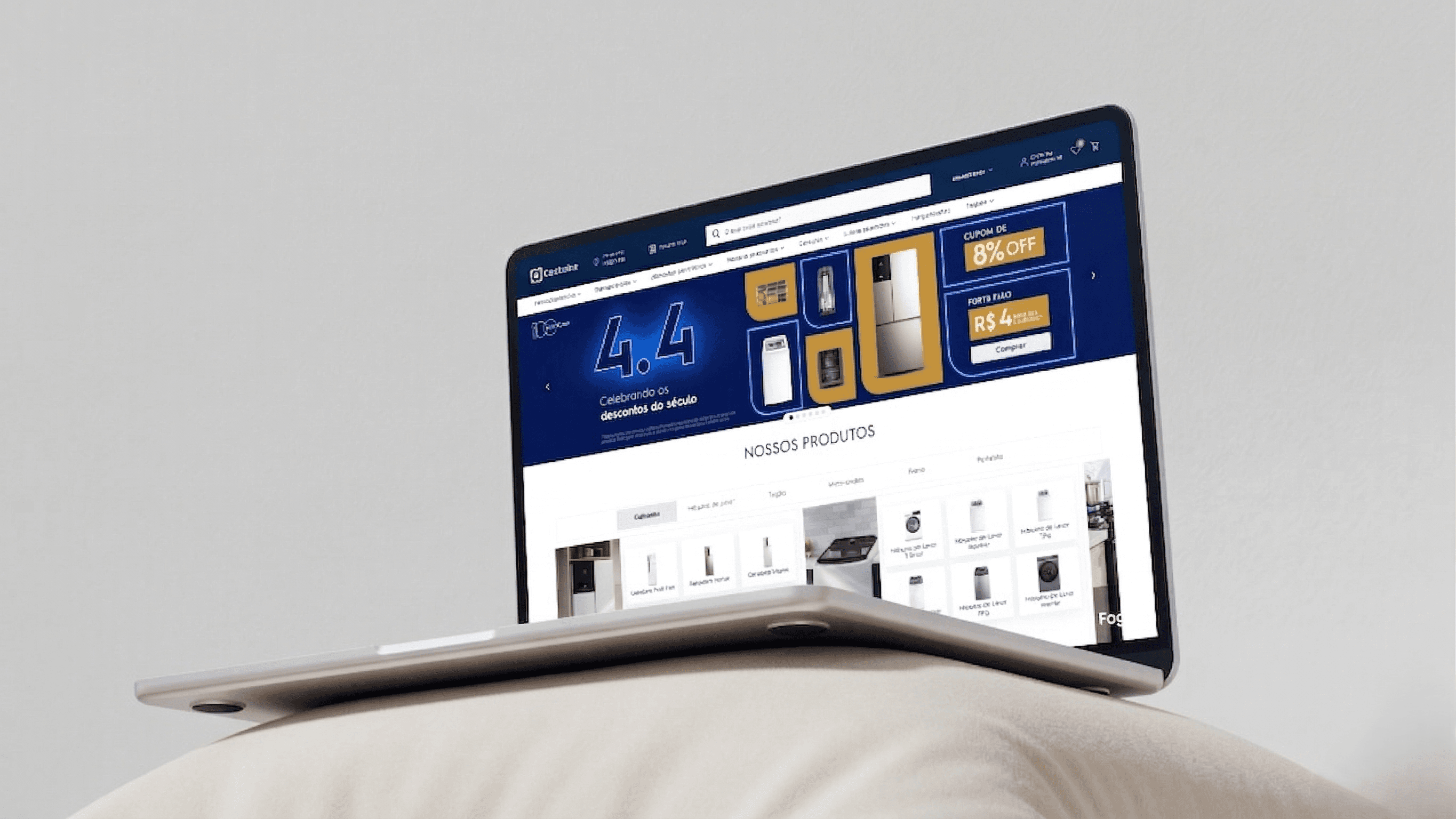 É onde qualquer deslize visual custa conversão. O trabalho aqui não é pontual: é iterativo, baseado em dados e sempre com uma pergunta de fundo: o que está impedindo o usuário de avançar? As páginas de produto foram desenvolvidas com um objetivo específico: aproximar o digital da loja física. Cada detalhe de UI foi pensado para incentivar a retirada presencial e aumentar o ticket nas lojas, uma prioridade direta do squad de omnichannel.