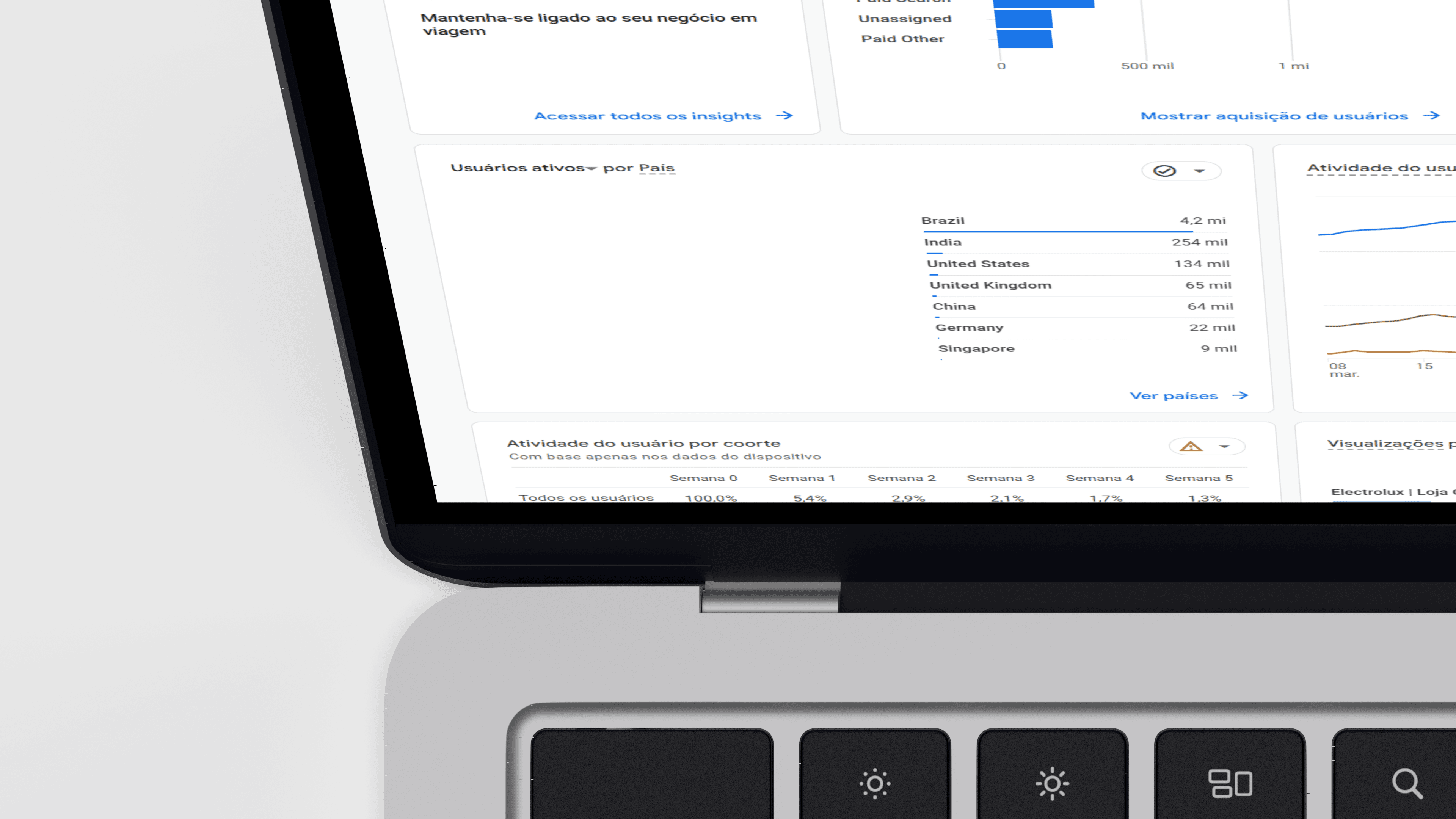 As ferramentas de análise, Google Analytics, Qualtrics e CrazyEgg, apontam crescimento contínuo de uso ao longo do ano. Os números sobem porque as decisões têm base.