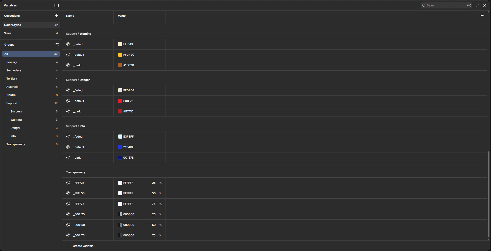 Utilizando as Variáveis do Figma, estruturei o Design System da Tuiss Raamdecoratie para suportar múltiplos modos e temas. Isso permite, por exemplo, a fácil implementação de um modo escuro ou a adaptação para diferentes mercados, mantendo a integridade visual e funcional. Uma abordagem que otimiza o tempo de design e desenvolvimento, e prepara a plataforma para o futuro."