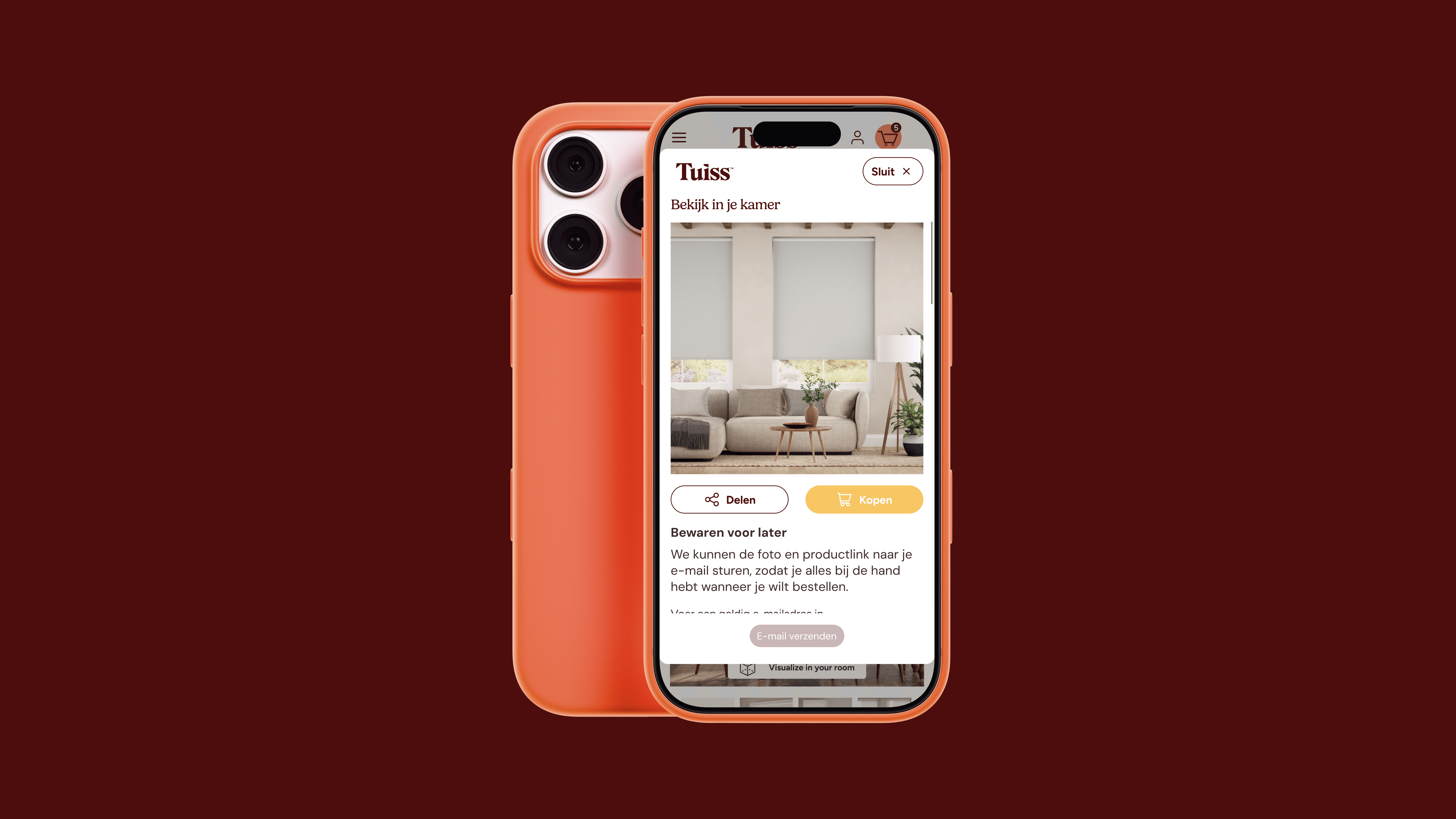 Experiência de compra fluida na palma da mão: Otimizei as interfaces mobile para que a escolha e personalização de produtos da Tuiss Raamdecoratie sejam simples e agradáveis. O resultado são telas que guiam o usuário de forma intuitiva, desde a descoberta até a finalização da compra, elevando a satisfação e o engajamento."